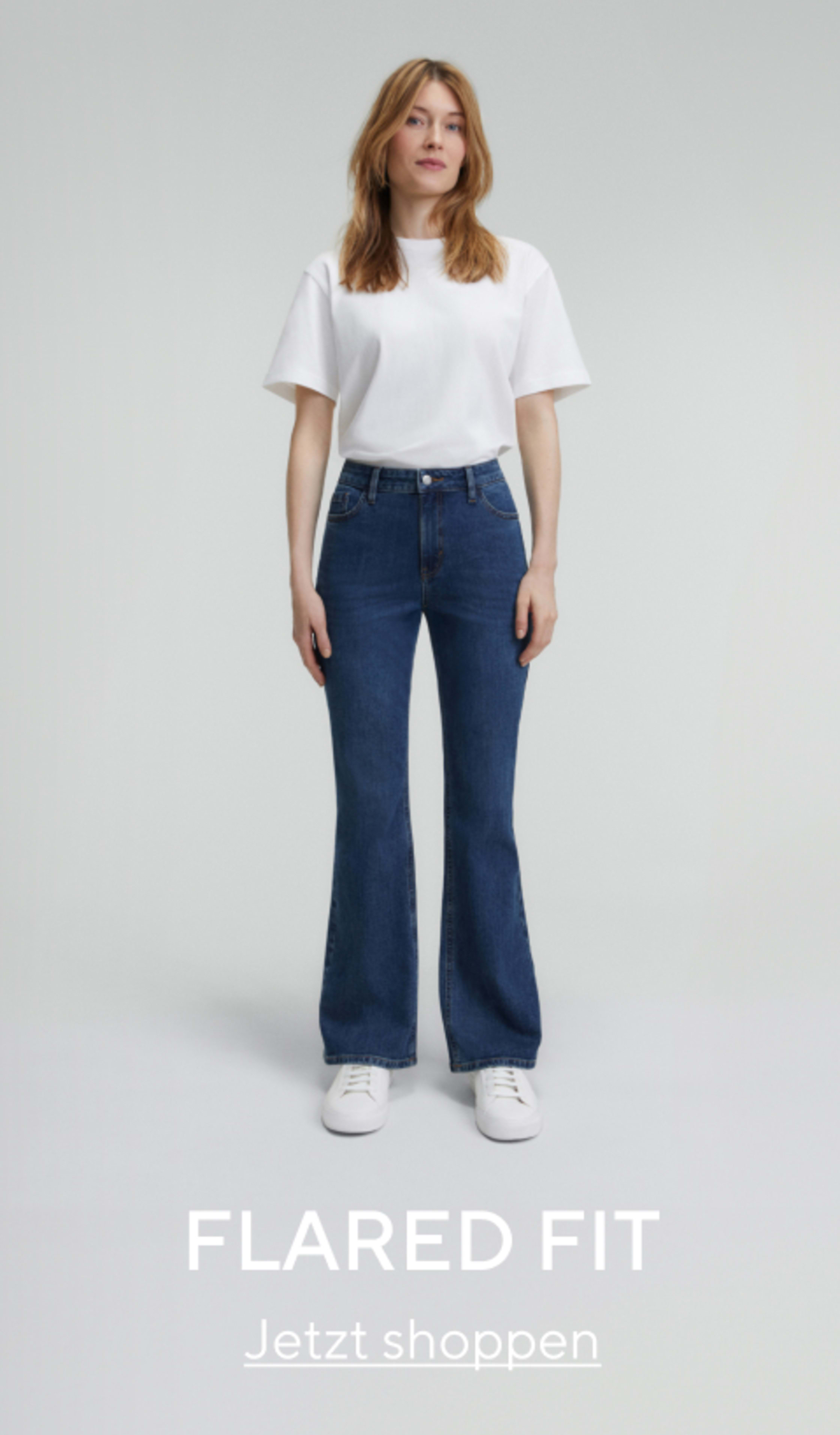 Die Jeans mit dem Sanduhr-Effekt. Schmal am Oberschenkel, unten mit Schlag.